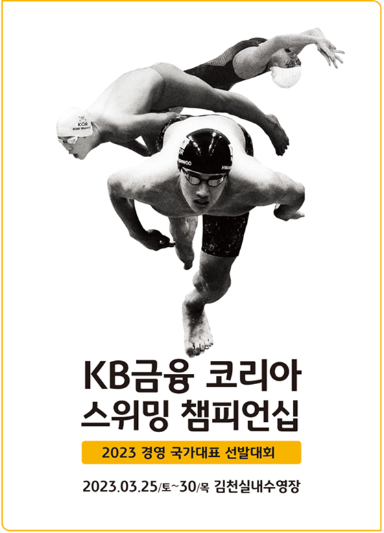 대한수영연맹은 "오는 3월 25일부터 30일까지 김천 실내수영장에서 진행되는 2023 경영 국가대표 선발대회에 KB금융그룹이 타이틀 후원을 맡아 'KB금융 코리아 스위밍 챔피언십'이란 이름으로 진행된다"고 21일 밝혔다.