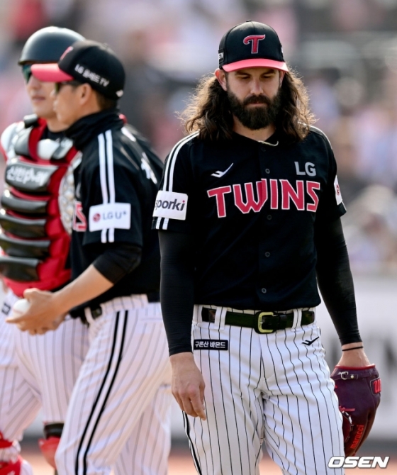 켈리(오른쪽)가 1일 수원 KT전에서 6회 강판되고 있다.