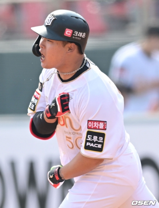 강백호가 3회 홈런을 친 뒤 포효하고 있다.
