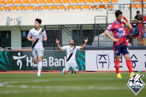 김천의 공격은 계속됐다. 문전에서 틈틈이 슈팅을 연결했지만, 빈번히 무산되면서 아쉬움을 삼켰다. 후반 44분에는 김준범의 회심의 헤더 슈팅이 크로스바를 강타하면서 씁쓸함을 감추지 못했다.