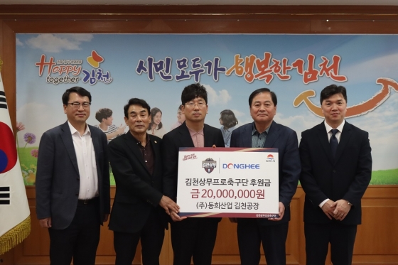 [스포탈코리아] 이현민 기자= ㈜동희산업이 김천상무에 2년 연속으로 후원금 2천만원을 전달했다.