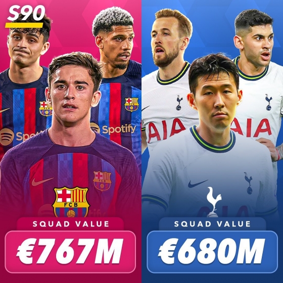 케인, 손흥민, 로메로를 뒤를 이어 히샬리송, 데얀 쿨루셉스키 등이 이름을 올렸고 토트넘은 스쿼드 가치에서 6억 8000만 유로(약 9780억)를 기록했다.
