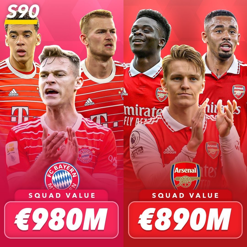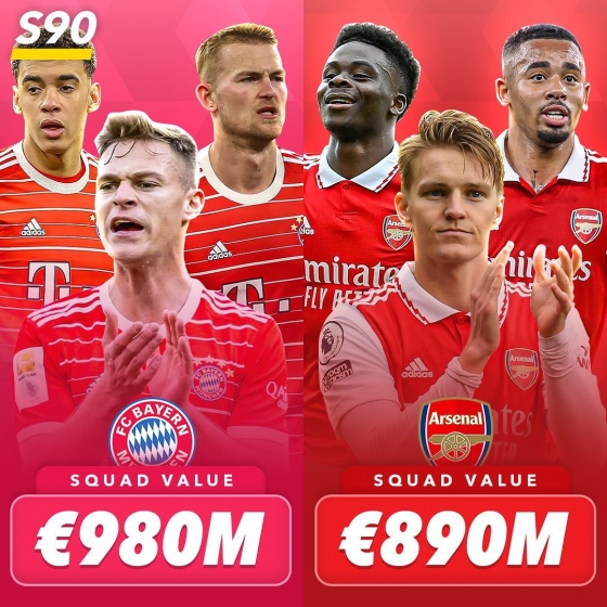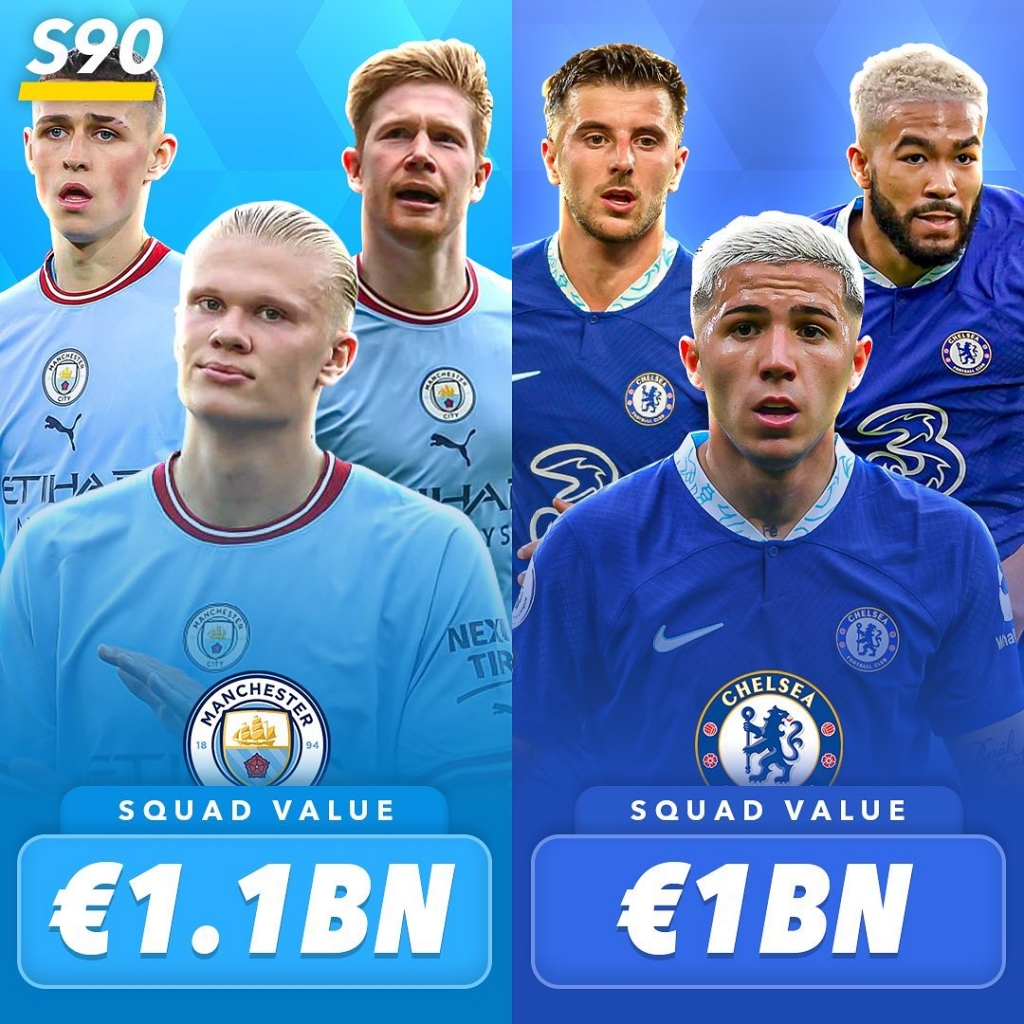 맨시티의 1조가 넘는 스쿼드 가치는 엘링 홀란드가 1억 7000만 유로(약 2445억)로 가장 높은 몸값을 자랑했다.