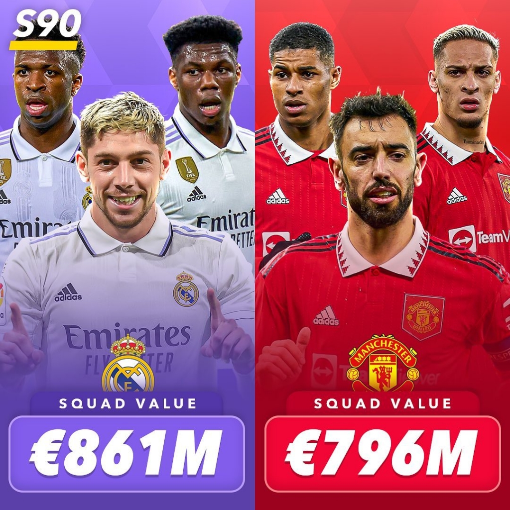엔조 페르난데스, 리스 제임스, 메이슨 마운트, 웨슬리 포파나를 보유하고 있는 첼시는 10억 유로(약 1조 4382억)를 기록하면서 2위에 랭크됐다.