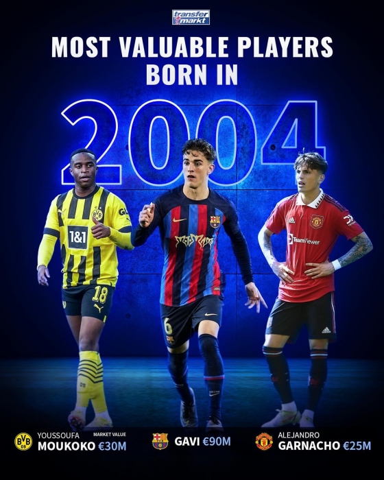 유럽 축구 통계 매체 ‘트랜스퍼마크트’는 지난 11일(현지시간) 2004년 생 몸값 TOP3를 공개했다.