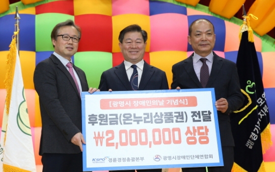 국민체육진흥공단 경륜경정총괄본부가 19일 장애인의 날을 맞아 광명시장애인단체연합회와 광명시장애인체육회에 기부금을 전달했다.