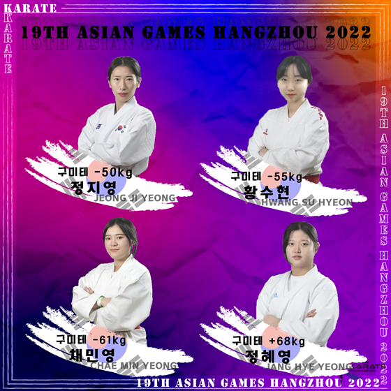 아시안게임 대표 선수로는 기존의 남자 가타(형) 박희준(부산), 구미테 -60kg 구주영(울산), -75kg 피재윤(경북), -84kg 백준혁(경북)이다. 여자 선수는 구미테 -50kg 정지영(경북), -55kg 황수현(경북), -61kg 채민영(대구), +68kg 정혜영(울산) 선수다.