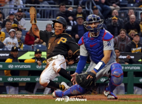 배지환은 2회말 자신의 실수를 공격에서 만회했다. 1사 주자 없는 상황. 신더가드를 상대로 볼카운트 2-2에서 7구째를 공략해 내야 안타를 만들어냈다. 번개 스피드 그 자체였다. 2루 쪽 깊숙한 방면으로 타구를 날린 그는 전력 질주를 펼쳤다. 다저스 2루수 바르가스가 넘어지면서 잡은 뒤 1루로 뿌렸으나 간발의 차로 세이프가 됐다. 이어 후속 헤지스 타석 때 2루 도루에 성공한 배지환은 헤이즈의 2타점 적시 2루타 때 득점을 올렸다.