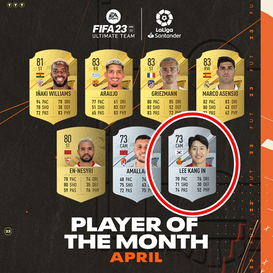 이강인은 올 시즌 마요르카의 에이스를 넘어 리그에서 손꼽히는 활약을 펼치고 있다. 리그 30경기에서 출전해 5골 7도움을 올리며 이미 커리어하이 기록을 세웠다. 최근 퍼포먼스는 눈이 부실 정도다. 이강인은 지난 18일 셀타 비고와 원정 경기에서는 9차례 드리블 돌파, 키패스 3회 등을 성공시켰다. 골이나 도움 없이도 유럽축구통계사이트 후스코어드닷컴 기준, 양 팀 통틀어 가장 높은 평점 9.1을 받았다. 경기 MVP에 유럽 5대 리그 베스트11에도 선정됐다. 후스코어드닷컴이 그 한 주간 평점이 가장 높은 선수들을 토대로 팀을 짠 것인데, 이강인도 당당히 이름을 올렸다. 월드클래스 킬리안 음바페(파리 생제르맹)와 어깨를 나란히 했다.