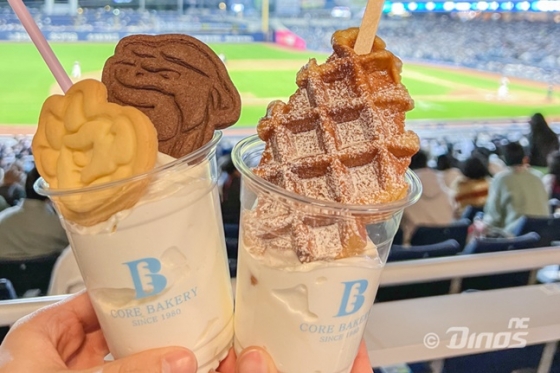 야구 관람 시 출출함을 달랠 먹을거리도 풍성해졌다. 반올립피자샵, BHC 등 유명 프랜차이즈 매장이 들어섰고, 지역을 대표하는 40년 전통의 베이커리 전문점 '코아양과'가 입점했다. 코아양과 매장에서는 대표 메뉴인 밀크쉐이크와 함께 NC의 마스코트인 단디, 쎄리 쿠키를 맛볼 수 있다.