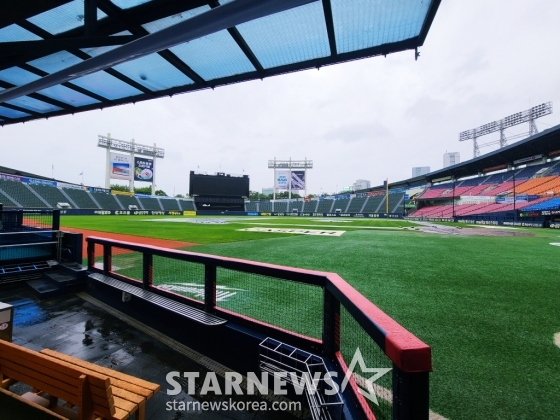 전국에 전날(5일)부터 봄비가 내리는 가운데, 이날 오전에도 서울에는 계속 비가 내리기 시작했다. 오전 10시부터 빗줄기가 더욱 거세지기 시작했다. 장대비가 잠실구장에 퍼부었다.