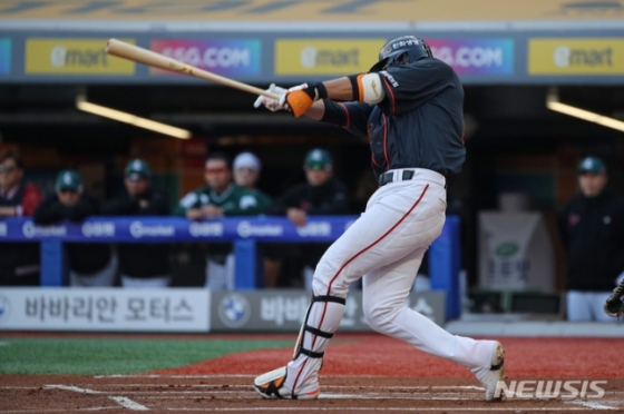 이날 한화 타선은 경기 초반부터 불을 뿜었다. 지난달 7일 한화전에서 6이닝 무실점 호투했던 박종훈을 상대했으나 1회초 이원석이 볼넷, 노시환이 좌전안타로 밥상을 차리더니 채은성이 박종훈의 시속 120㎞ 낮게 떨어지는 커브를 받아쳐 중앙 담장을 훌쩍 넘기는 스리런 홈런을 날렸다.