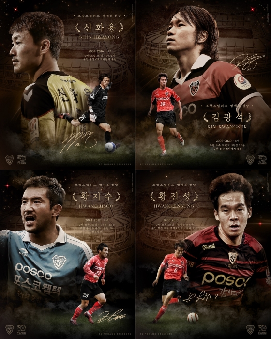 [스포탈코리아] 이현민 기자= 2023년 창단 50주년을 맞은 포항스틸러스가 구단 명예의 전당 선수 부문에 소속 기간 10년 이상, 200경기 이상 출전한 김광석, 황진성, 신화용, 황지수를 추가로 헌액한다. 이는 지난 2013년 창단 40주년 당시 프로 축구단 최초로 ‘구단 명예의 전당’에 13인을 헌액한 이후 10년 만이다.