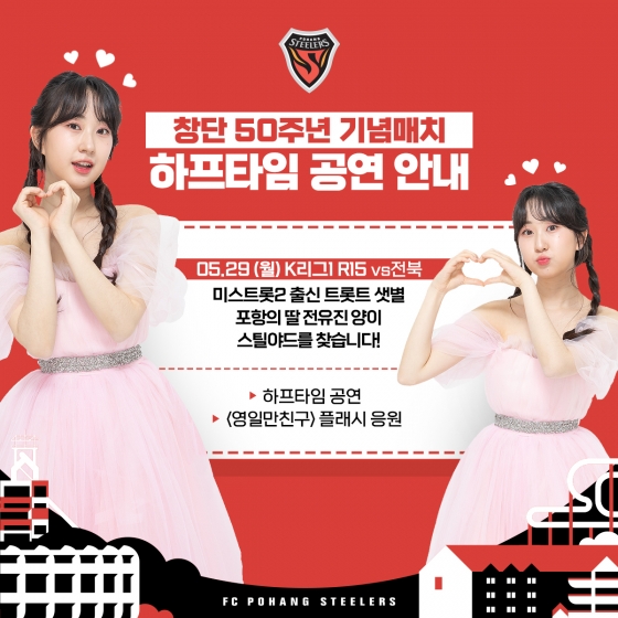 [스포탈코리아] 한재현 기자= 포항스틸러스가 부처님 오신 날 대체공휴일인29일(월) 오후 4시 30분 스틸야드에서 열리는 2023 하나원큐 K리그1 전북과의 홈경기를 ‘포항스틸러스 창단 50주년 기념 매치’로 치른다. 포항은 이 날 스틸야드를 찾는 관중들에게 역대급 경품과 축하공연을 선보이며 창단 50주년을 자축할 계획이다.