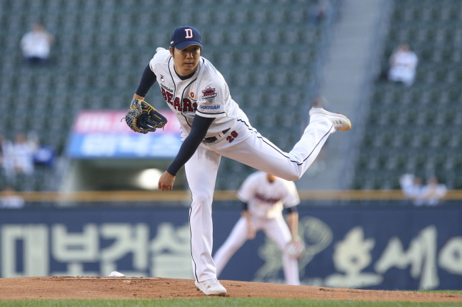 선두 타자 호세 피렐라가 낮게 떨어지는 공을 기술적으로 받아쳐 출루했다. 밋밋하게 떨어지는 공을 강민호가 받아쳐 무사 1,3루. 강한울의 기습 번트 때 양석환의 악송구까지 나와 1실점을 했고 어깨가 더 무거워졌다. 오재일을 헛스윙 삼진으로 돌려세웠으나 1사 1,2루에서 이재현에게 2타점 2루타를 맞았다. 1-4.