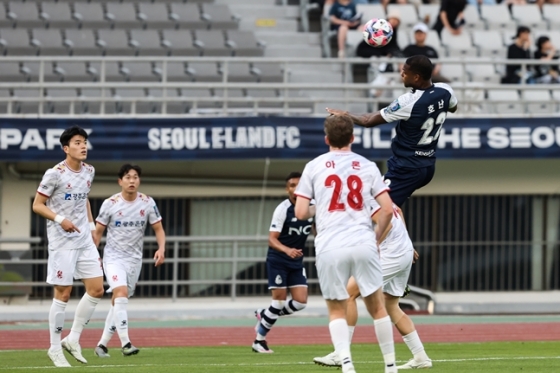 서울이랜드가 경기 첫 슈팅을 터트리며 분위기를 끌어올렸다. 전반 26분 조동재가 왼쪽 측면에서 낮게 크로스를 올렸다. 브루노가 슈팅으로 연결했지만 이준 골키퍼가 뛰어올라 쳐냈다. 이준 골키퍼의 슈퍼세이브가 빛났다.