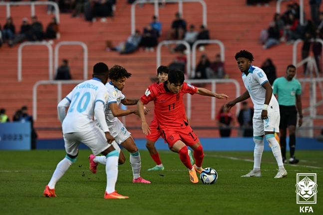 김은중 감독이 이끄는 한국은 26일 아르헨티나 멘도사의 멘도사 스타디움에서 열린 온두라스와 '2023 국제축구연맹(FIFA) 아르헨티나 20세 이하(U-20) 월드컵' 조별리그 F조 2차전에서 2-2로 비겼다. 지난 1차전에서 프랑스를 2-1로 꺾었던 한국은 1승1무를 기록했다. 온두라스는 1무 1패가 됐다.