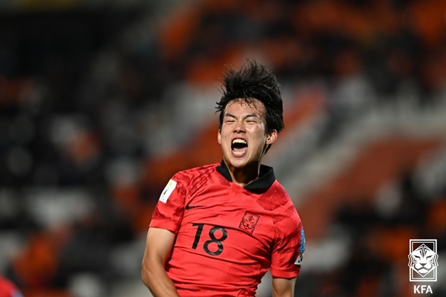 한국은 후반 초반부터 거세게 몰아붙였다. 후반 2분 강성진이 박스 안에서 개인기로 수비를 제친 뒤 슛을 때렸지만 골키퍼 정면으로 향했다.