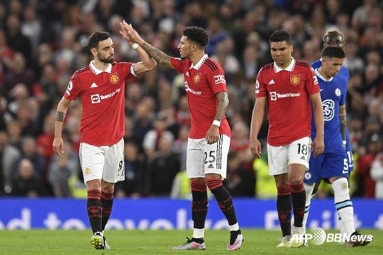 맨유는 26일(한국시간) 영국 맨체스터의 올드 트래포드에서 열린 첼시와의 2022~2023시즌 잉글리시 프리미어리그(EPL) 32라운드 순연경기에서 카세미루와 앙토니 마샬, 브루노 페르난데스, 마커스 래쉬포드의 연속골에 힘입어 4-1로 완승했다.