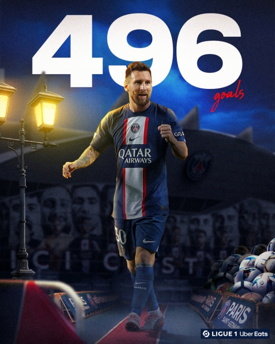 메시는 유럽 5대 리그(잉글랜드·스페인·이탈리아·독일·프랑스)에서 개인 통산 496번째 골(라리가 474골·리그1 22골)을 기록했다. 495골(EPL 103골·라리가 311골·세리에A 81골)을 넣고 사우디아라비아로 떠난 호날두를 제치고 유럽 5대 리그 통산 최다골 신기록을 세웠다.