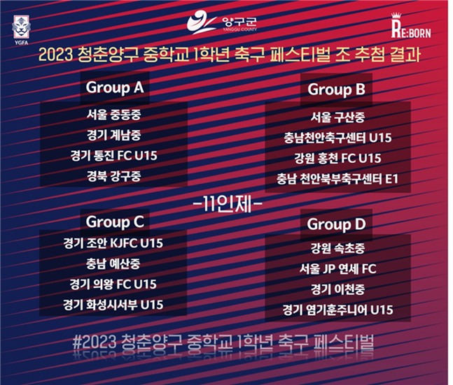 중학교 축구 선수들의 경기력 향상을 위한 '2023 청춘양구 중학교 1학년 축구 페스티벌'이 강원도 양구군에서 펼쳐진다.