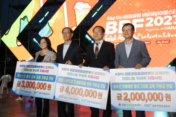 국민체육진흥공단 경륜경정총괄본부가 지난 26일 '2023 하남 미사경정공원 바비큐비어 페스티벌' 개회식에서 하남시 관내 어려운 환경에 있는 저소득층과 어르신들을 대상으로 기부금을 전달했다.