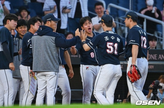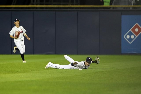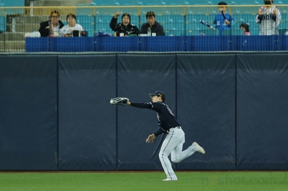하지만 조수행은 수비에서 하이라이트 필름을 잇달아 제조했다. 2회 말 두산 선발 곽빈은 이닝 시작과 함께 제이슨 마틴에게 안타, 권희동에게 몸에 맞는 볼을 내줬고 2사 후에도 도태훈의 볼넷으로 만루 위기를 자초했다.