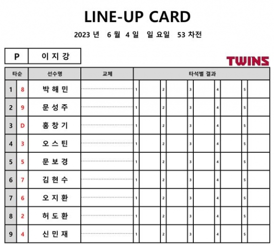 한편 LG는 이날 박해민(중견수)-문성주(우익수)-홍창기(지명타자)-오스틴(1루수)-문보경(3루수)-김현수(좌익수)-오지환(유격수)-허도환(포수)-신민재(2루수) 순으로 선발 라인업을 구성했다. 선발 투수는 이지강. 이에 맞서 NC는 이재학이 선발 등판한다.