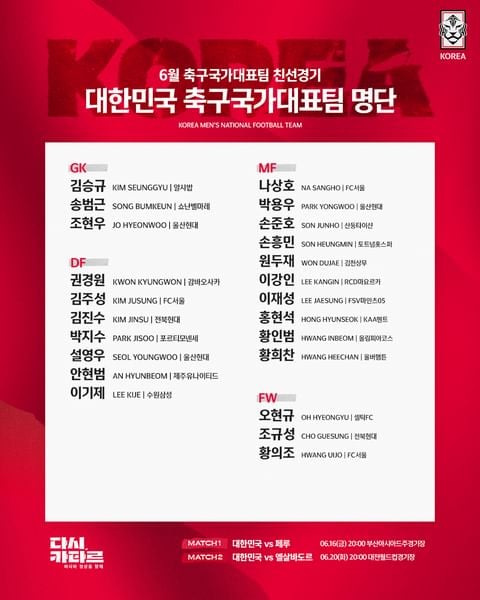 K리그에서 새 얼굴이 대거 승선했다. 안현범, 홍현석, 박용우는 클린스만 감독의 선택을 받으면서 처음으로 A대표팀에 소집됐다.