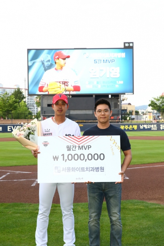 같은 날 임기영도 서울화이트치과병원에서 시상하는 5월 월간 MVP에 선정됐다임기영은 지난 5월 한 달간 9경기에 등판해 18이닝 동안 3홀드와 탈삼진 11개, 평균자책점 1.50을 기록했다. 이날 시상은 서울화이트치과병원 하동옥 원장이 했고, 시상금은 100만원이다.