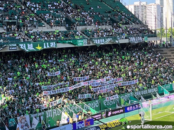 전북의 서포터석에서는 대표이사의 퇴진을 원하는 목소리가 이전과 같이 어김없이 터졌다.