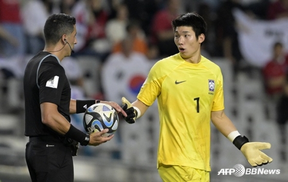 한국은 바로 위기를 맞았다. 후반 6분 투르키아가 박스 안으로 쇄도하는 카스데이에게 전진패스를 찔러줬다. 이를 카사데이가 바로 슛했지만 김준홍 골키퍼가 막아냈다. 이어 후반 8분 지오바네가 드리블 돌파 후 슛을 때렸지만 또 골키퍼에게 막혔다.