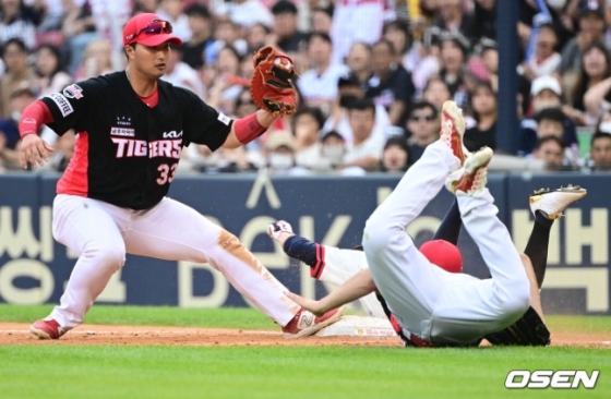 전날(9일) 두 차례 전력 질주로 KIA의 승리를 이끌었던 류지혁이 경기 직후 장비를 정리하며 남긴 말이다. 하지만 힘들다던 류지혁은 이틀 연속 빠른 발과 기민한 판단력으로 KIA 공격의 물꼬를 텄다.