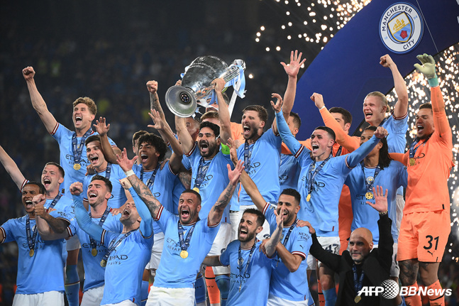 맨시티는 11일(한국시간) 터키 이스탄불의 아타튀르크 스타디움에서 열린 인터밀란(이탈리아)과 2022~2023 유럽챔피언스리그 결승전에서 팀 미드필더 로드리의 결승골을 앞세워 1-0으로 승리, 대회 우승을 차지했다. 이로써 맨시티는 그토록 염원하던 챔스 트로피 '빅이어'를 들어올렸다. 올 시즌 맨시티는 프리미어리그, FA컵 우승을 획득한 것에 이어 챔스 무대까지 정복해 3관왕을 거머쥐었다. 잉글랜드 클럽 역사상 알렉스 퍼거슨 전 감독이 지휘했던 1998~1999시즌 맨유(잉글랜드)에 이어 두 번째 영광이다. 트레블을 달성한 팀은 맨시티, 맨유를 포함해 인터밀란, 바르셀로나(스페인), 바이에른 뮌헨(독일) 등 8팀뿐이다. 맨시티도 축구역사에 한 획을 그었다.