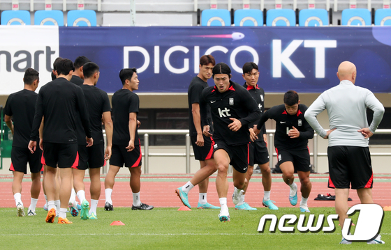 위르겐 클린스만 감독이 이끄는 한국 축구대표팀은 6월 A매치 2연전을 치른다. 오는 16일 오후 8시 부산아시아드주경기장에서 페루와, 20일 오후 8시 대전월드컵경기장에서 엘살바도르와 친선전을 펼친다. 중국에서 구금 중인 손준호(산둥 타이산)를 제외한 대표팀 24명이 부산 구덕운동정에서 훈련 중이다.