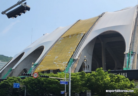 경기장 지붕은 2020년 태풍 마이삭 때 9개가 파손됐다. 3년 가까이 방치돼 있었다. 7월에 보수할 예정이었는데, 이번 A매치로 앞당겼다. 우천 시 관중들이 피해를 볼 가능성과 전파를 탔을 때 미관 등이 문제점으로 꼽혔다. 발 빠른 움직임으로 대처했다.