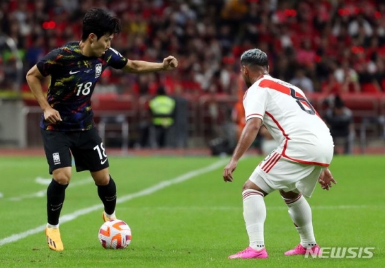 클린스만 감독은 기존 주전 멤버 대신 어린 선수들, 새 얼굴들을 적극 기용해 선발명단을 구성했다. 오현규(셀틱), 황희찬(울버햄튼)이 최전방 공격수로 출전했고, 황인범(올림피아코스), 원두재(울산현대), 이재성(마인츠), 이강인(마요르카)도 미드필더 라인에 배치됐다. 포백은 이기제(수원삼성), 박지수(포르티모넨스), 정승현(울산현대), 안현범(제주유나이티드)이었다. 골문은 골키퍼 김승규(알사드)가 지켰다. 손흥민의 부재 속에 22세 특급 이강인, 오현규 등이 공격을 이끌었고, K리그에서 좋은 활약을 펼쳐 A대표팀에 첫 발탁된 안현범은 데뷔전까지 치렀다. 지난 3월 소집명단에 뽑힌 센터백이 이번엔 한 명도 없어 누가 출전할지 관심을 모은 가운데, 정승현, 박지수가 기회를 얻었다. 페루는 4-5-1 포메이션으로 맞섰다.