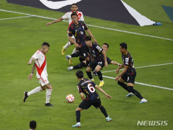 한국은 초반부터 페루의 거센 공격에 고전했다. 전반 5분 한국은 수비라인에서 패스로 풀어나가다 공을 뺏겼다. 이어진 위기 속에서 페루 베테랑 공격수 파올로 게레로가 위협적인 오른발 슈팅을 날렸다. 하지만 김승규 골키퍼가 몸을 쭉 뻗어 공을 막아냈다. 그 다음 코너킥에선 게레로의 슈팅이 높이 떴다. 한국의 플레이도 조금씩 활발해졌다. 이강인의 개인기가 돋보였다. 전반 7분 오른쪽 측면에서 상대 수비 3명에게 둘러싸였는데도 화려한 개인기를 선보였다. 페루 선수들은 반칙으로 이강인의 공격을 저지했다.