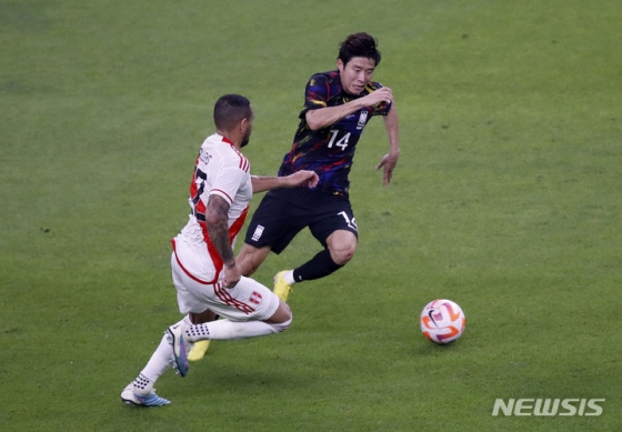 믿을 건 이강인의 왼발이었다. 이강인을 중심으로 수 차례 공격 찬스를 만들어졌다. 후반 28분 이강인은 황희찬의 크로스를 받아 헤더 슈팅을 날렸다. 바닥을 한 차례 때린 뒤 골문 안으로 향했지만, 페루 골키퍼가 몸을 날렸다. 이강인은 동료들에게 찬스도 제공했다. 후반 29분 이강인의 택배 크로스에 조규성이 헤더슈팅을 시도했다. 이번에도 골키퍼 정면에 향했다. 후반 32분 조규성의 헤더 슈팅마저 골대를 살짝 벗어났다. 역시나 크로스의 주인공은 이강인이었다. 후반 35분 프리킥 상황에서도 이강인이 크로스를 시도했는데, 황희찬의 헤더 슈팅이 벗어났다.