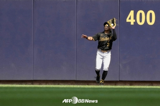 이어 피츠버그가 0-2로 뒤진 5회말. 선두타자 조이 위머가 중견수 방면으로 깊은 타구를 날렸다. 외야에 햇빛이 쏟아지는 상황에서도 배지환은 공에서 시선을 떼지 않았고, 침착하게 뒷걸음질을 치며 낙구 지점으로 향했다. 결국 배지환은 워닝 트랙을 밟은 뒤 펜스 근처에 가서 포구에 성공했다. 공을 잡은 뒤 배지환은 펜스에 등을 부딪치기도 했다. 배지환의 타구 판단, 넓은 수비 범위가 빛난 장면이었다.