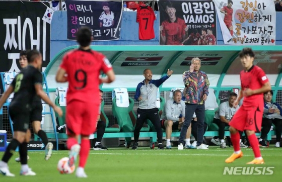클린스만 감독은 교체로 또 한 번 변화를 꾀했다. 후반 12분 수비형 미드필더 박용우가 나오고 홍현석이 들어갔다. 전반 부상 여파가 있던 김진수는 박규현과 교체됐다.