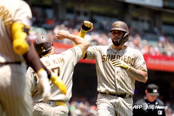 김하성은 첫 타석부터 테이블세터로서 역할을 보여줬다. 1회 초 선두타자로 등장한 그는 샌프란시스코 선발 알렉스 우드를 상대로 풀카운트 승부 끝에 볼넷을 골라 출루에 성공했다. 이어 3번 후안 소토의 볼넷으로 2루로 이동한 김하성은 5번 산체스의 좌중간 3점 홈런으로 홈을 밟아 선취점의 주인공이 됐다.