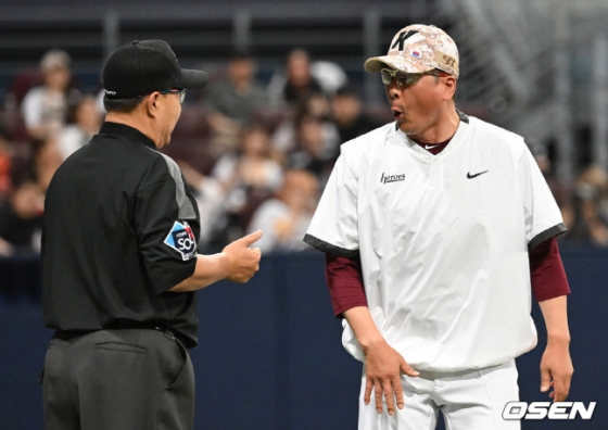 KBO리그 규정상 비디오판독 결과에 대해 어필할 수 없도록 돼 있는데 이에 이의제기를 한 홍원기 감독은 퇴장 명령을 받았고 정철원이 김혜성을 좌익수 뜬공으로 잡아내며 2-1 리드도 지켜냈다.