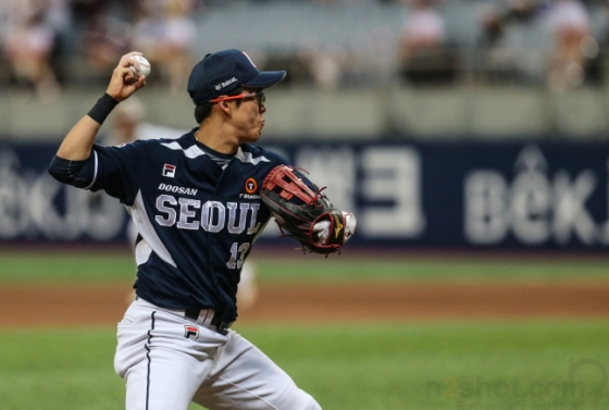 쟁점은 스리피트 아웃 상황이었다. 전날 팀이 1-2로 뒤진 7회말 무사 1,2루에서 임지열의 땅볼 타구가 3루수 허경민의 글러브에 들어갔다. 3루 주자가 홈에서 포스아웃된 이후 장면이 중요했다. 두산 포수 양의지가 병살플레이를 완성시키기 위해 1루로 송구했는데 공은 타자주자 임지열의 몸에 맞고 옆으로 흘렀다. 그 사이 2루 주자가 3루를 거쳐 홈을 파고 들었는데 두산은 비디오 판독을 요청했다. 판정은 번복됐다. 임지열이 주루 과정에서 라인 안쪽으로 달렸다는 것이었다.