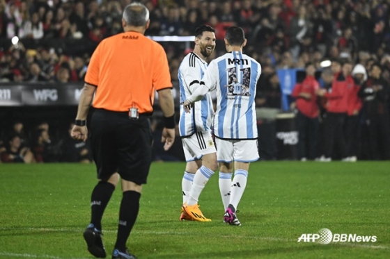 메시는 25일(한국시간) 아르헨티나 로사리오의 에스타디오 마르셀로 비엘사에서 열린 아르헨티나 대표팀과 CA 뉴웰스 올드 보이스의 친선경기에서 대표팀 유니폼을 입고 경기에 나섰다.