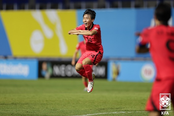 분위기를 잡은 한국은 후반 24분 윤도영이 추가골까지 넣었다. 상대의 육탄방어에도 끝까지 슈팅을 날려 골망을 흔들었다. 윤도영은 A대표팀 캡틴 손흥민의 '찰칵 세리머니'를 선보였다. 한국은 후반 39분 김현민이 마지막 골까지 터뜨려 쐐기를 박았다. 김현민은 이번 6월 A매치 대표팀에 소집된 문선민의 관제탑 세리머니로 승리를 자축했다. 결국 한국은 3골차 리드를 잘 지켜내 아시안컵 4강, 월드컵 본선 진출 티켓까지 동시에 따냈다.