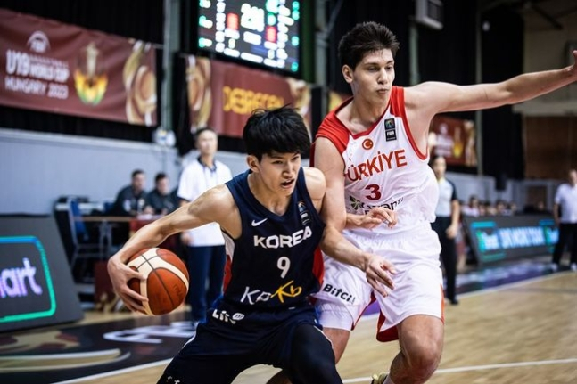 이세범(용산고) 감독이 이끄는 한국은 26일(한국시간) 헝가리 데브레첸에서 열린 '2023 U-19 국제농구연맹(FIBA) 월드컵' 조별리그 D조 2차전에서 튀르키예에 76-91, 15점 차로 패했다. 이로써 한국은 개최국 헝가리와 1차전에서 완패(59-85)에 이어 2연패에 빠졌다.