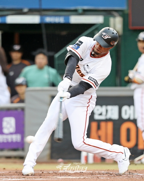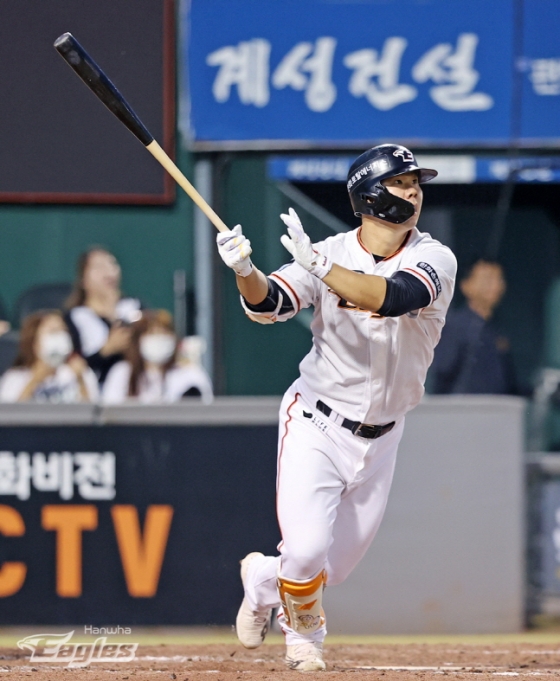 연승을 달리는 한화 타선은 이전과는 달리 확실히 힘이 있었다. 페냐의 어깨를 가볍게 해줬다. 5회말 김태연이 선두타자로 나서 중전안타로 출루했고 최원호 감독의 바람대로 최재훈이 7구 승부 끝에 침착히 볼넷을 골라내며 밥상을 차렸다. 이도윤이 보내기 번트에 실패해 2루 주자가 3루에서 아웃됐지만 고영표의 폭투가 나왔고 상황은 1사 2,3루로 바뀌었다.