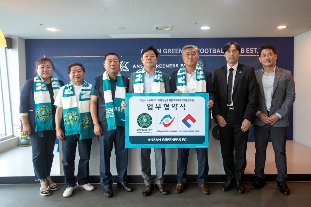 [스포탈코리아] 한재현 기자= 안산그리너스가 한국노총 경기본부 안산지역지부(의장 방운제, 이하 한국노총 안산지역지부) 및 (사)안산노총노동자복지연구회와 업무 협약을 체결했다.