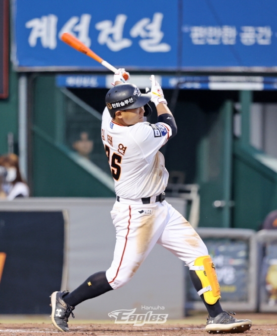4회말엔 채은성이 좌전안타로 출루했고 문현빈이 빠른 땅볼 타구를 만들어내며 KT 내야의 실책을 유발했다. 1사 1,3루에서 들어선 김태연은 중견수 방면 큰 뜬공을 날리며 3루 주자 채은성을 홈으로 불러들였다. 2-4.